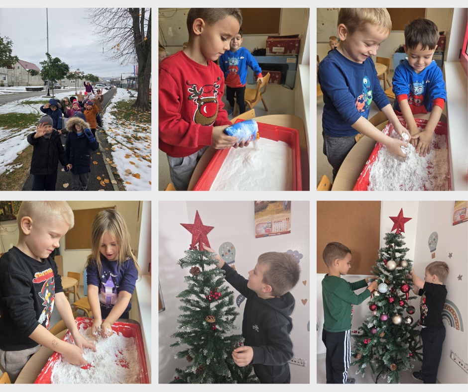 Tijekom adventskog razdoblja u vrtiću djeca su sudjelovala u raznim prigodnim i kreativnim aktivnostima. Prostor vrtića ukrašen je adventskim bojama, a djeca su kroz likovne aktivnosti i grafomotoričke vježbe na temu Adventa razvijala finu motoriku i maštu. Zajedno su izrađivali božićne i zimske ukrase te sudjelovali u kićenju prostora. Boravak na svježem zraku obogatile su šetnje i klizanje, a posebnu radost donijela je igra s umjetnim snijegom. Kroz razgovore i praktične aktivnosti djeca su učila o primjerenoj odjeći u zimskim uvjetima, potičući samostalnost i brigu o sebi.