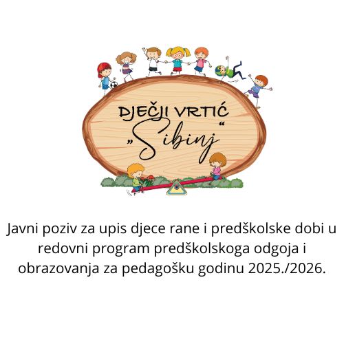 Poštovani roditelji, u prilogu se nalazi Javni poziv za upis djece rane i predškolske dobi u redovni program predškolskog odgoja i obrazovanja za pedagošku godinu 2025./2026. i Plan upisa u Dječji vrtić Sibinj za pedagošku godinu 2025./2026.