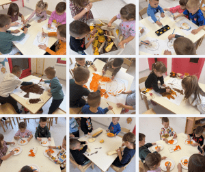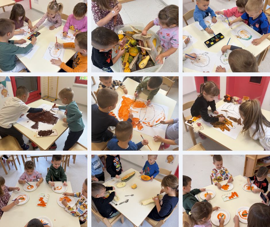 Aktivnosti provedene u sklopu teme Jesenske boje i plodovi bile su usmjerene na poticanje dječje znatiželje i istraživačkog duha kroz neposredno promatranje prirodnih promjena u jesenskom razdoblju. Djeca su kroz raznovrsne aktivnosti upoznavala karakteristike jeseni, boje u prirodi te različite plodove koje nam ona daruje. Kroz likovne aktivnosti djeca su razvijala finu motoriku, kreativnost i estetsku osjetljivost. Manipuliranjem kestena, žireva, kukuruza i bundeva poticali smo senzorno istraživanje te bogaćenje rječnika novim pojmovima. U matematičkim aktivnostima djeca su razvrstavala, brojila i uspoređivala plodove prema veličini, boji i obliku. Tijekom razgovora u krugu poticali smo izražavanje doživljaja i iskustava vezanih uz boravak u prirodi, čime se jačala komunikacija i međusobno uvažavanje.