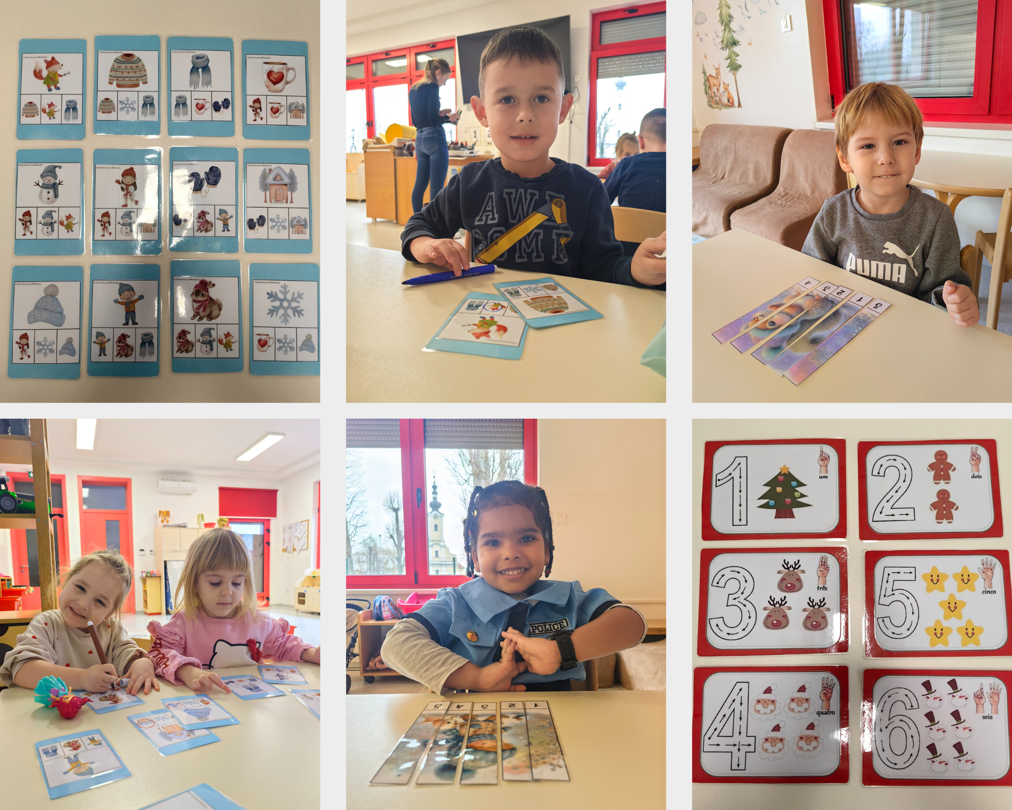 Djeca kroz igru, planirane i samoinicirane aktivnosti u dječjem vrtiću postupno usvajaju znanja, činjenice i vještine o odnosima u prostoru, odnosima između predmeta, pojma broja i količini koje jednim imenom nazivamo predmatematičke vještine. Djeca u dobi od 3 do 4 godine prilikom prebrojavanja predmeta iz okoline razvija svijest da je posljednji izgovoreni broj jednak ukupnom broju predmeta, uči mehanički brojiti do 10, uspoređuje predmete prema određenim karakteristikama (veličina, duljina, težina). Tijekom sljedećih nekoliko tjedana aktivno ćemo raditi na razvoju predmatematičkih vještina iako su one svakodnevno prisutne u provedbi odgojno obrazovnog procesa. Na fotografijama su prikazane neke od ponuđenih aktivnosti.