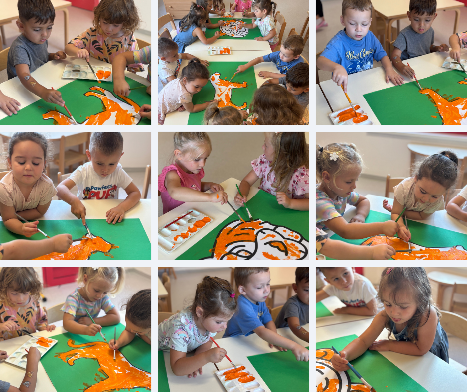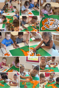 Tjedan na temu tigra bio je prilika da djeca kroz igru i istraživanje upoznaju životinje koje žive u dalekim krajevima. Promatranjem slika i videozapisa tigra, razgovorom o njegovu izgledu i načinu života, djeca su razvijala znatiželju, govor i sposobnost uspoređivanja. U likovnim aktivnostima izrađivali su tigraste uzorke koristeći crne i narančaste tonove, čime su vježbali finu motoriku i osjećaj za ritam boja. Tjelesne igre poput „Tigrić u džungli“ poticale su koordinaciju, brzinu i suradnju, dok su glazbene aktivnosti unijele pokret i veselje. Tema je djeci približila svijet životinja i učvrstila osjećaj pripadnosti skupini Tigrići.