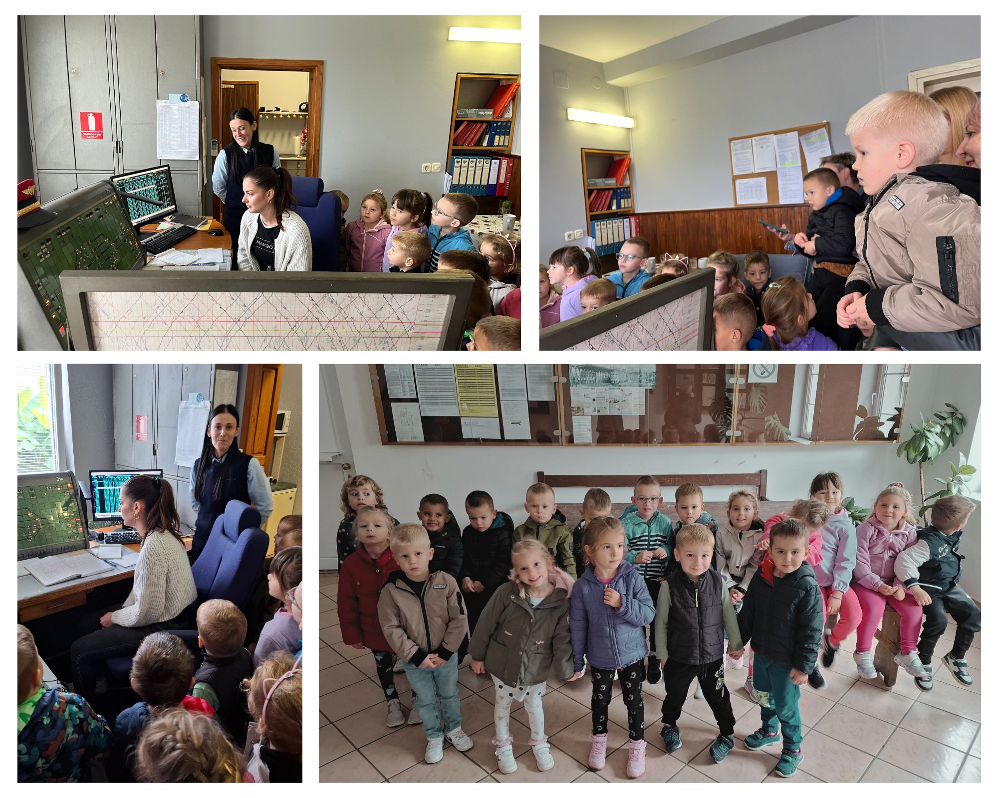 Posjetili smo Željezničku stanicu u Sibinju uz pratnju ravnateljice i stručnog tima. Djeca su uživo vidjela kontrolnu ploču pomoću koje prometnica Ines prati putanju vlakova, te vlak koji je pristao u stanicu na drugi peron.