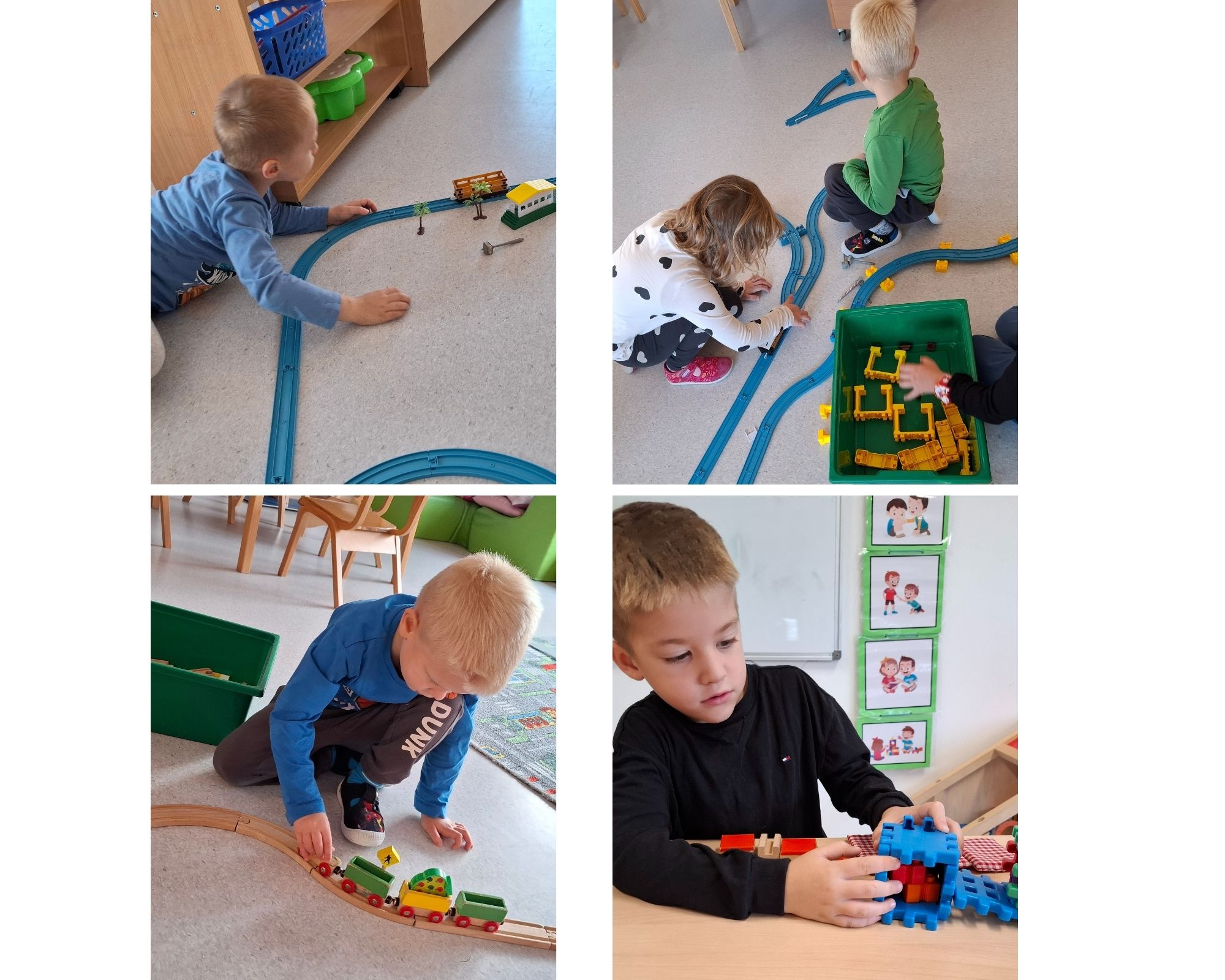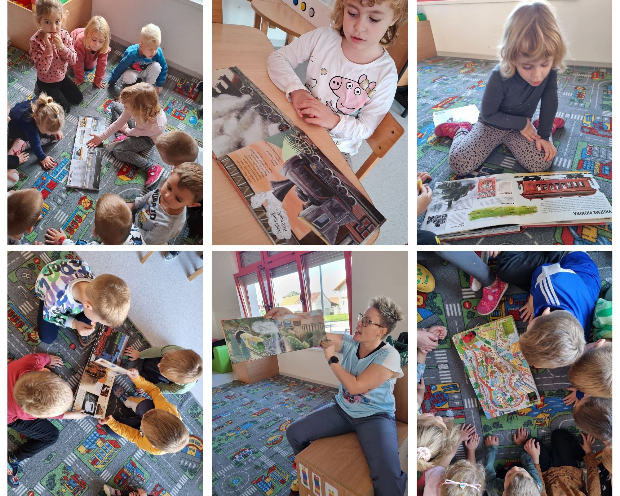 Već neko vrijeme traje interes za prijevoznim sredstvom „vlak“. Kako se interes potaknuo donošenjem pruge kao konstrukcijske igre djeca su započela istraživanje iste. Prema vođenju interesa djece, pratili smo što ih zanima kroz fokus grupe. Potkrijepili smo već postojeća znanja djece knjigama iz gradske knjižnice, gledanjem starog animiranog crtića o staroj lokomotivi „Mala lokomotiva“- Vujak, D. 1959.g. Isto tako, nakon priče djeca su promatrajući slike modela vlakova i lokomotiva kreativno izrazila svoju likovnu karakteristiku crtanjem i bojanjem istog.