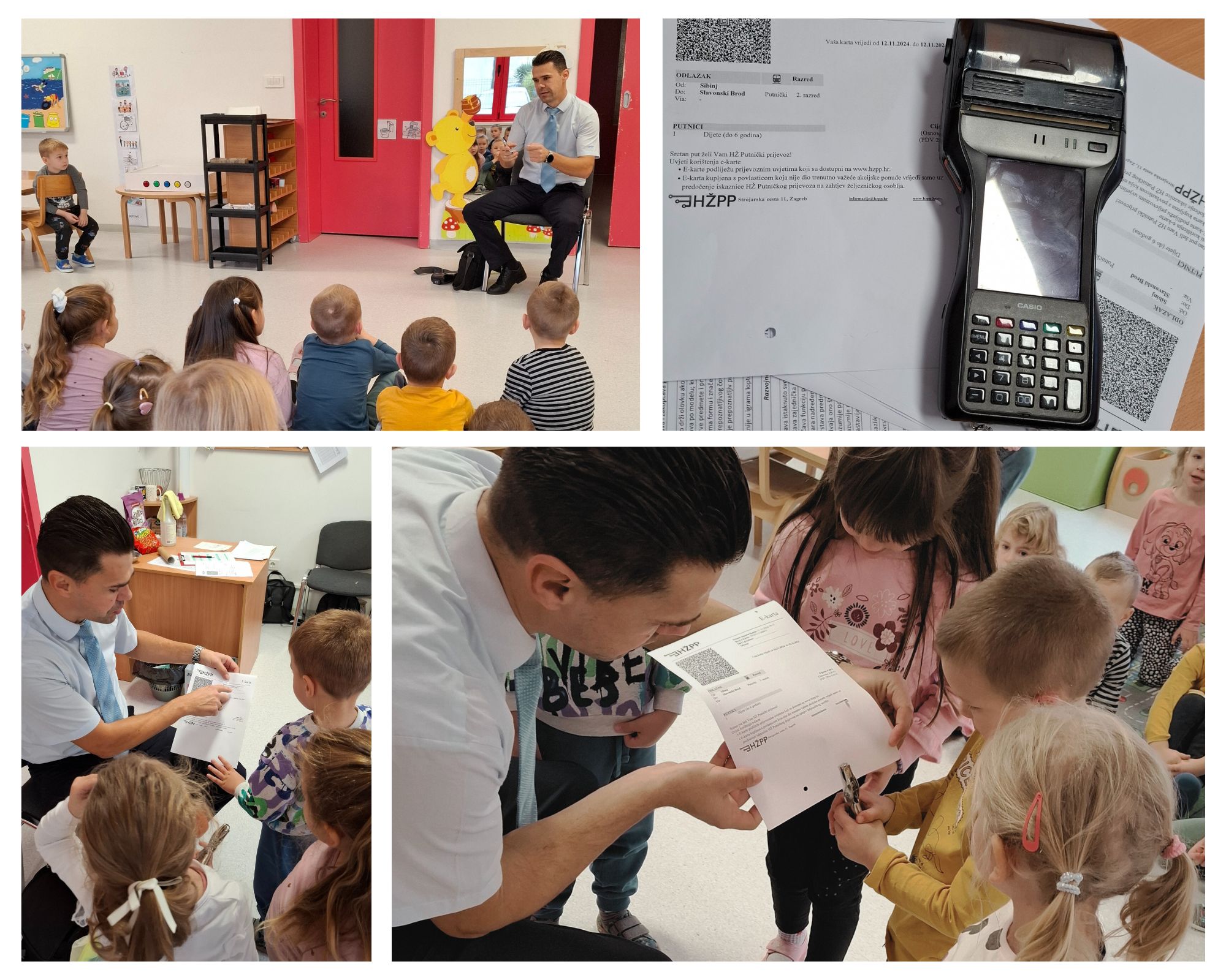 Postigli smo i suradnju s gospodinom Kovačevićem, tatom dječaka F.K. koji nas je sa zadovoljstvom posjetio i ostavio veliki utisak na djecu. Svojim znanjem o poslu konduktera u vlaku objasnio nam je kakav je to posao, što je sve njegov zadatak i kako se probuše karte. Djeca su ekspresiju prenijela na papir crtajući konduktera.